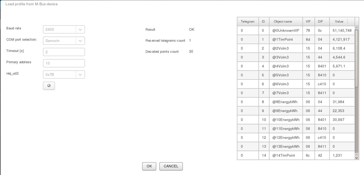 Informative value on automatic read from M-Bus device