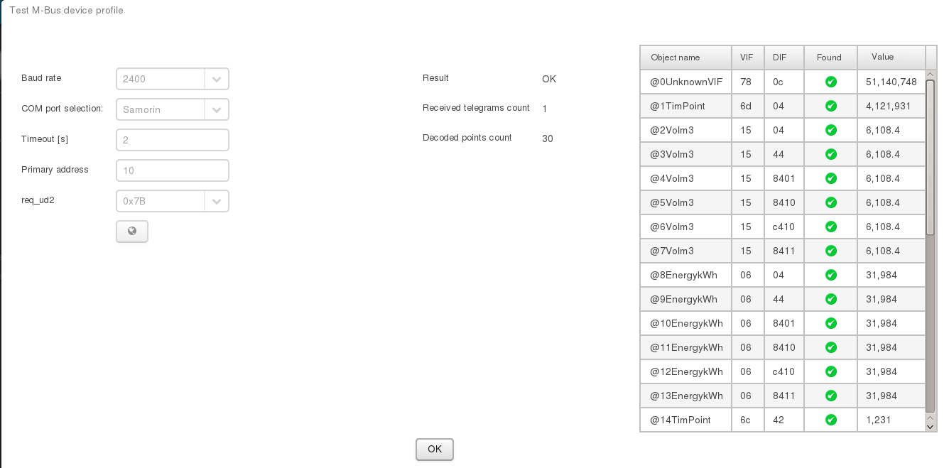 Test profile on M-Bus device