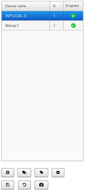 In top part of the screen is located list of currently configured devices.