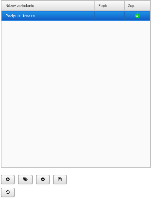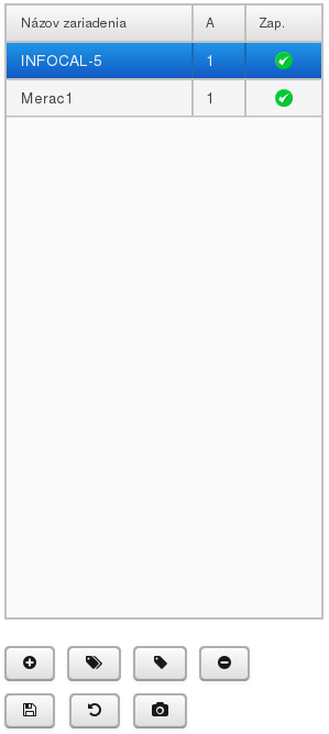 V hornej časti sa nachádza aktuálny zoznam nakonfigurovaných zariadení.