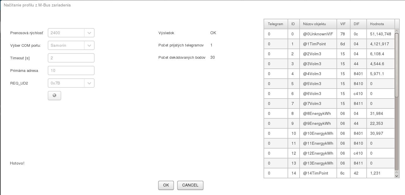 ![]() | Načítaj údaje z M-bus zariadenia, podľa nastavení COM portu a req_ud2 |