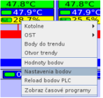 Na technologickej schéme na aktívnom prvku cez pravé tlačítko vyberte Nastavenia bodov